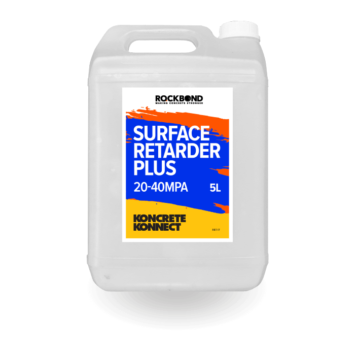 Surface Retarder Plus (RB7.17) is a concrete surface retarder and recommended to be used on concrete with strengths between 20 and 40 MPA and on concrete under 20MPA in hot weather. When applied to the surface of freshly poured concrete it delays the normal hydration of cement for a depth of 3-6mm (and occasionally deeper), whilst the underlaying concrete hardens normally. Surface Retarder – Plus is supplied ready to use from containers without site mixing and should not be diluted.