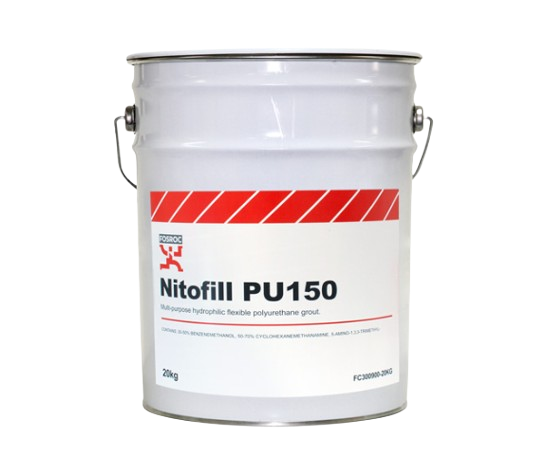 Nitofill PU150 is a multi-purpose hydrophilic polyurethane injection resin which reacts with available water to initiate expansion in the product to seal leaking cracks and joints in concrete and fill voids in generally inaccessible locations.
