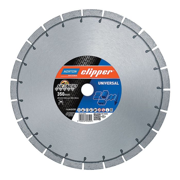 With up to 15mm high segments and a bespoke specification for each application, Norton Silencio is our quietest diamond blade, reducing noise by up to 30x (-15 dB) compared to conventional blades when used on concrete, granite and building materials, while achieving a fast, efficient cut.