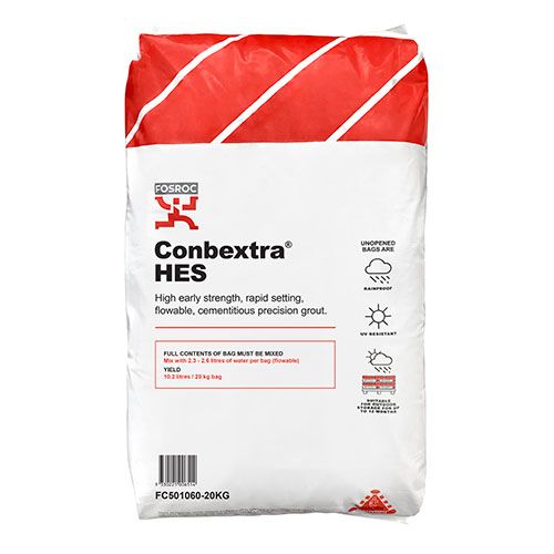 Conbextra HES is a shrinkage compensated cementitious grout used for free flow grouting in a wide range of applications where rapid strength gain is a pre-requisite. Conbextra HES has a compressive strength of 25 MPa @ 2 hours when mixed at flowable consistency.